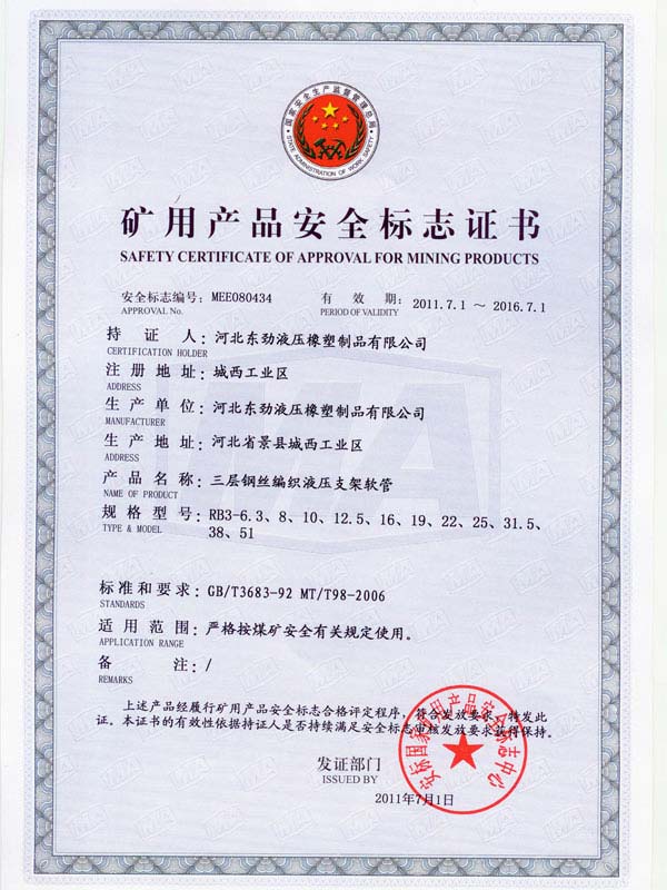 • 鋼絲編織管采用國際標準認可認可證書